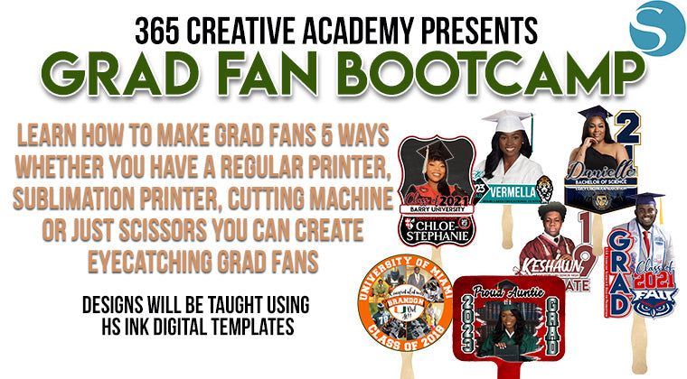 Whether you have a regular printer, sublimation printer, cutting machine or just scissors you can create eye catching grad fans. From Cardstock to Glitter to MDF Paddles this training will be your ONE STOP ALL IN ONE training to learn skills that will last a LIFETIME.