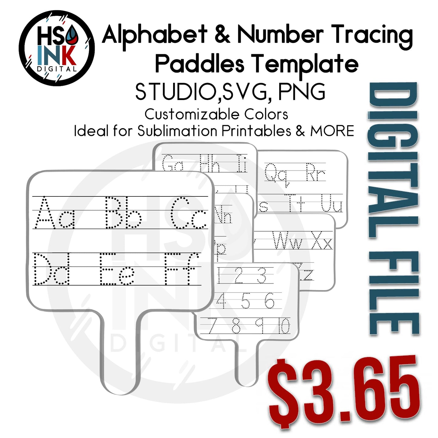 Our "HS INK Digital Alphabet and Numbers Tracing Paddle Template" is prefect solution for Toddlers ad Preschoolers to learn how to write the alphabet and their numbers. This products includes files in various formats sized to fit standard dry erase paddles but can be resized for other substrates.