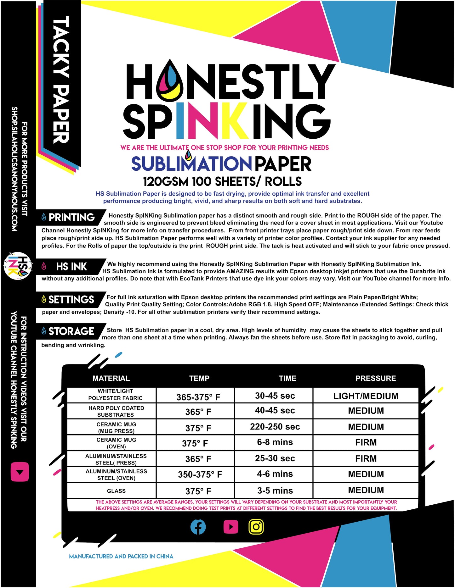 Regular price $15.63Honestly SpINKing INKcredible Tacky Sublimation Paper Sheets for Fabric/Textile and Soft Substrates