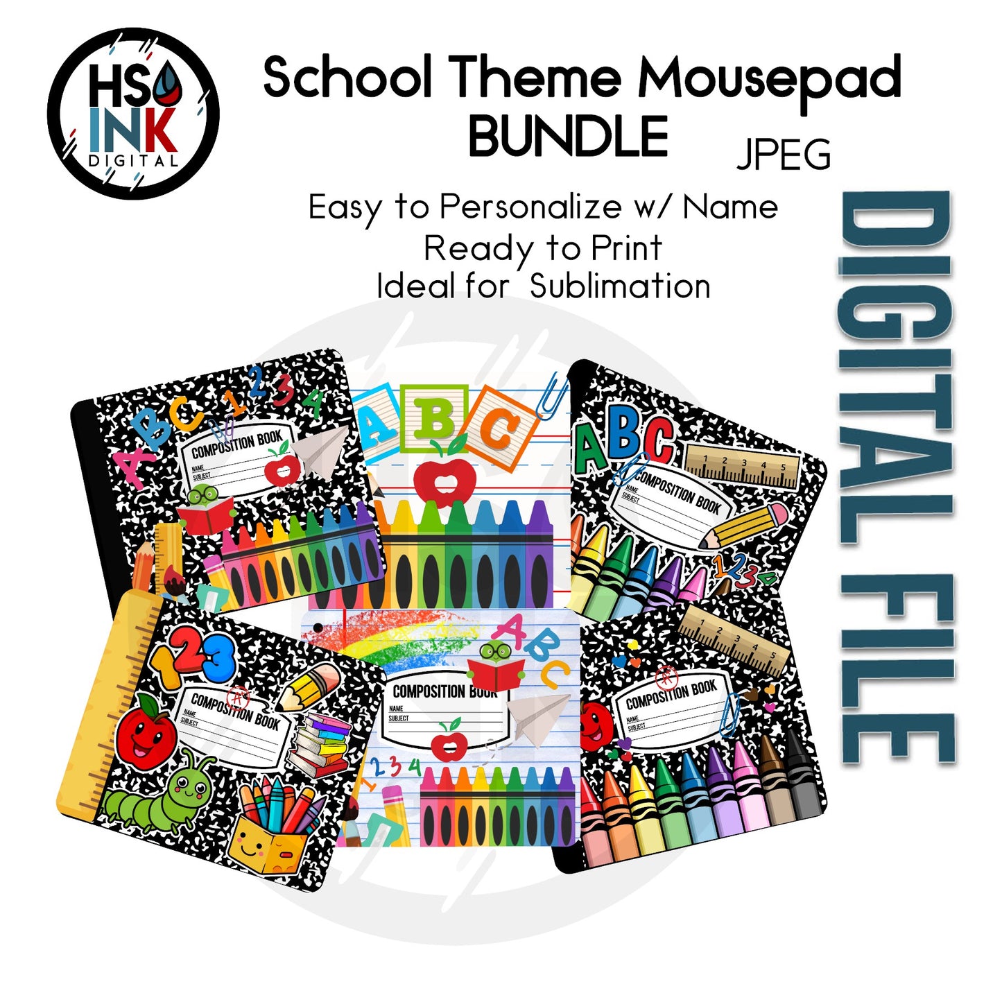 Regular price $3.65HS INK Digital Notebook School Theme Mousepad Design Files are ready to print jpeg design files sized to fit standard rounded rectangle mouse pad. T